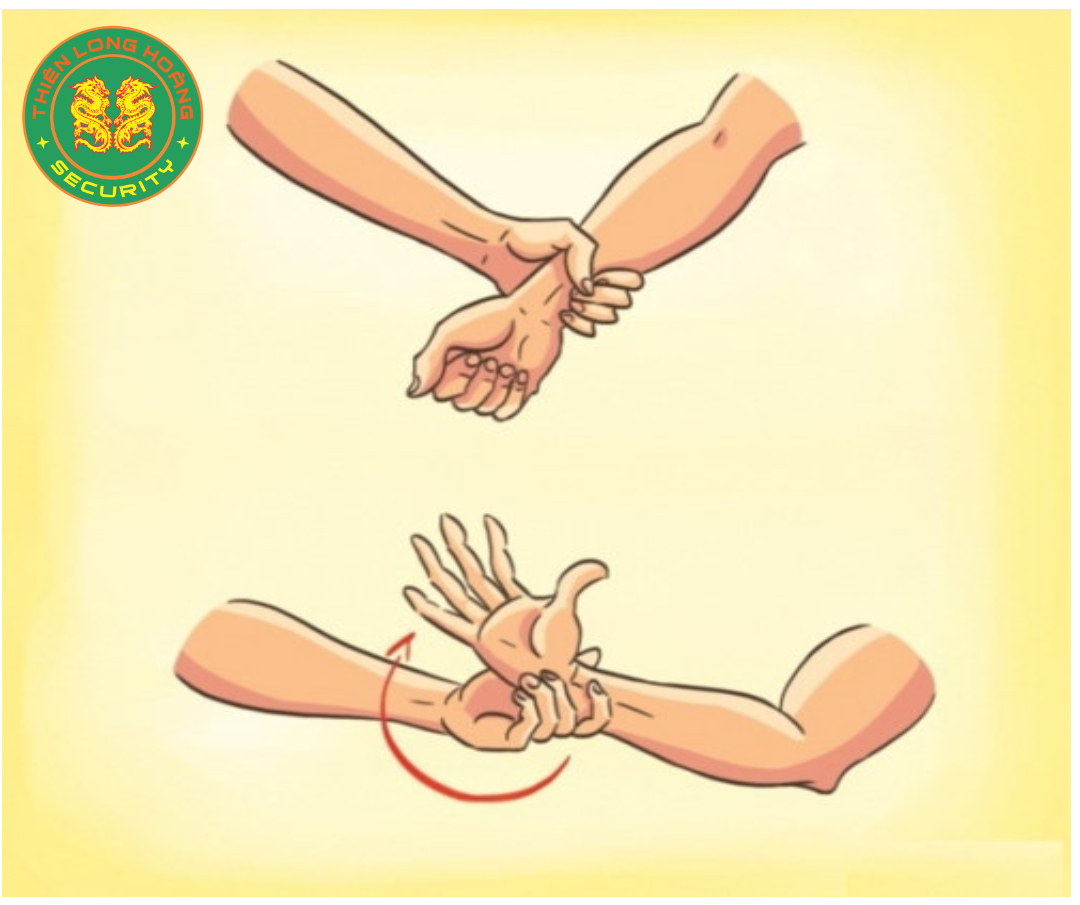 - Khi bị nắm chặt cổ tay, bạn hãy cúi xuống và cắn thật mạnh vào cánh tay kẻ tấn công. Đồng thời, dùng chân đá ngược vào chỗ hiểm của đối phương để thoát khỏi kẻ tấn công. Nếu bạn nữ đang mang giày cao gót thì hãy dùng gót giày giẫm thật mạnh vào chân bằng kẻ tấn công.