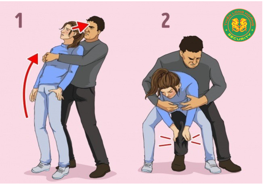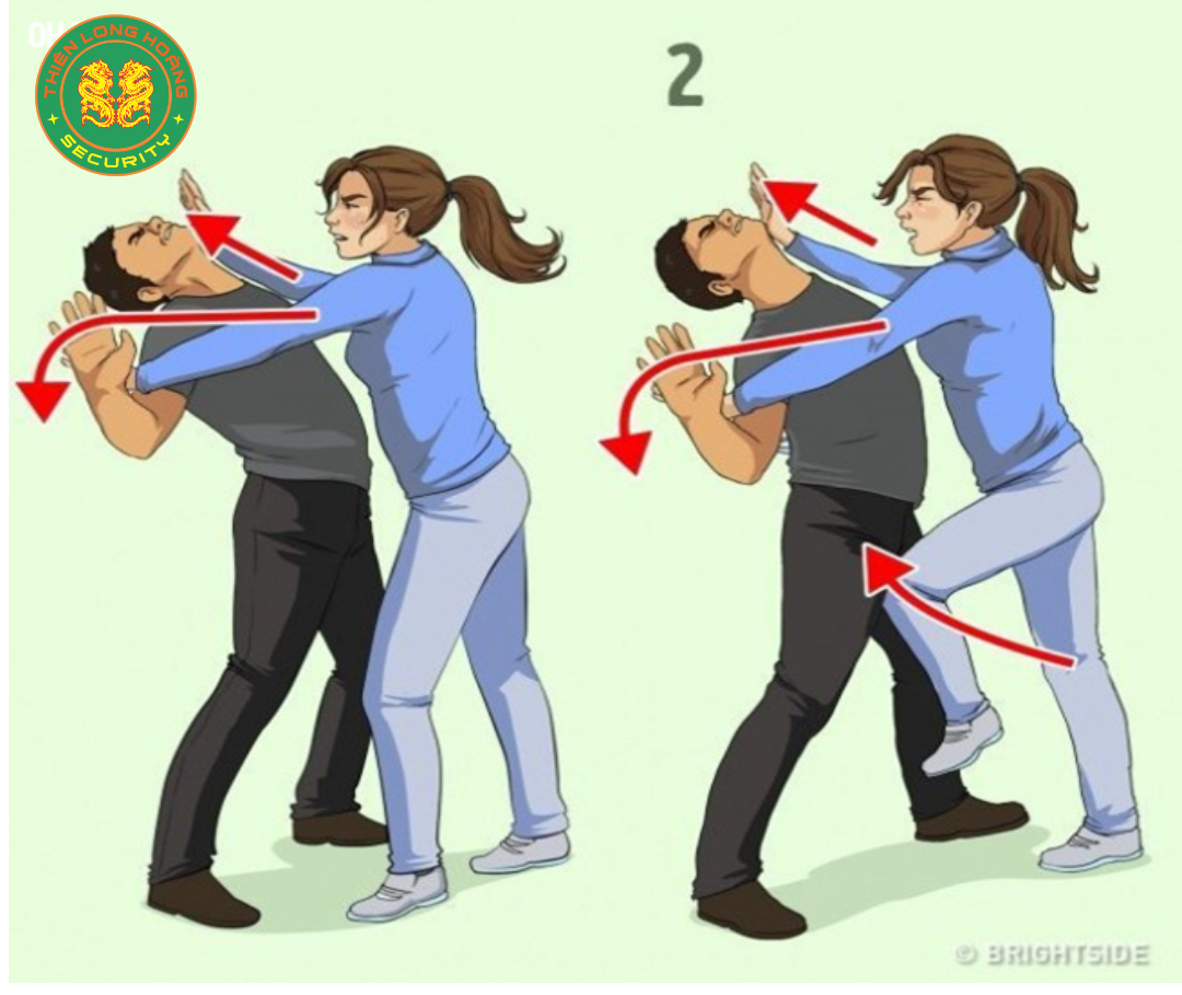 - Song song, ưỡn hông dùng lực đẩy đối phương ra và dùng chân đá vào hạ bộ của kẻ xấu. Rồi nhanh chóng chạy đến nơi đông người để nhờ đến sự trợ giúp.